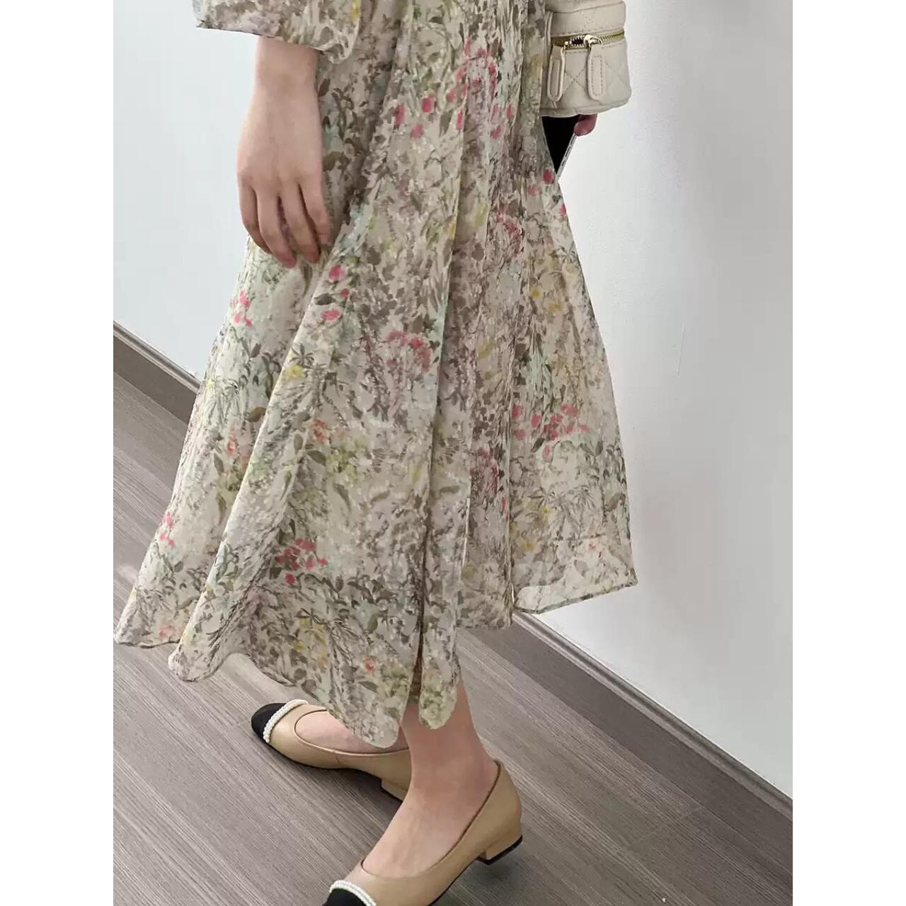 Vネック フローラル パフスリーブ ワンピース 10289