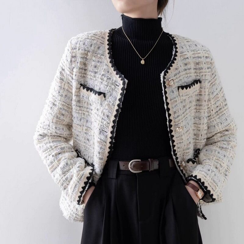 ツイード パールボタン ノーカラー ジャケット 10419