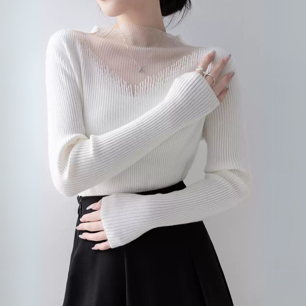 シアー ハイネック ニット トップス 10426
